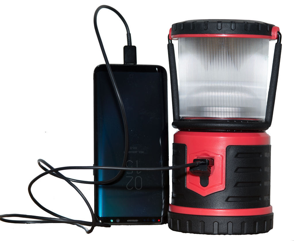 High performance, multi-purpose, multi-function lantern for camping, emergency, home and shop use. Made from high impact resistant plastic and black elastomeric base with IPX6 waterproof rating make this a rugged and all weather use lantern.